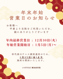 ※代表はテニス競技遠征の為、1月15日(木)より施術を開始いたします。